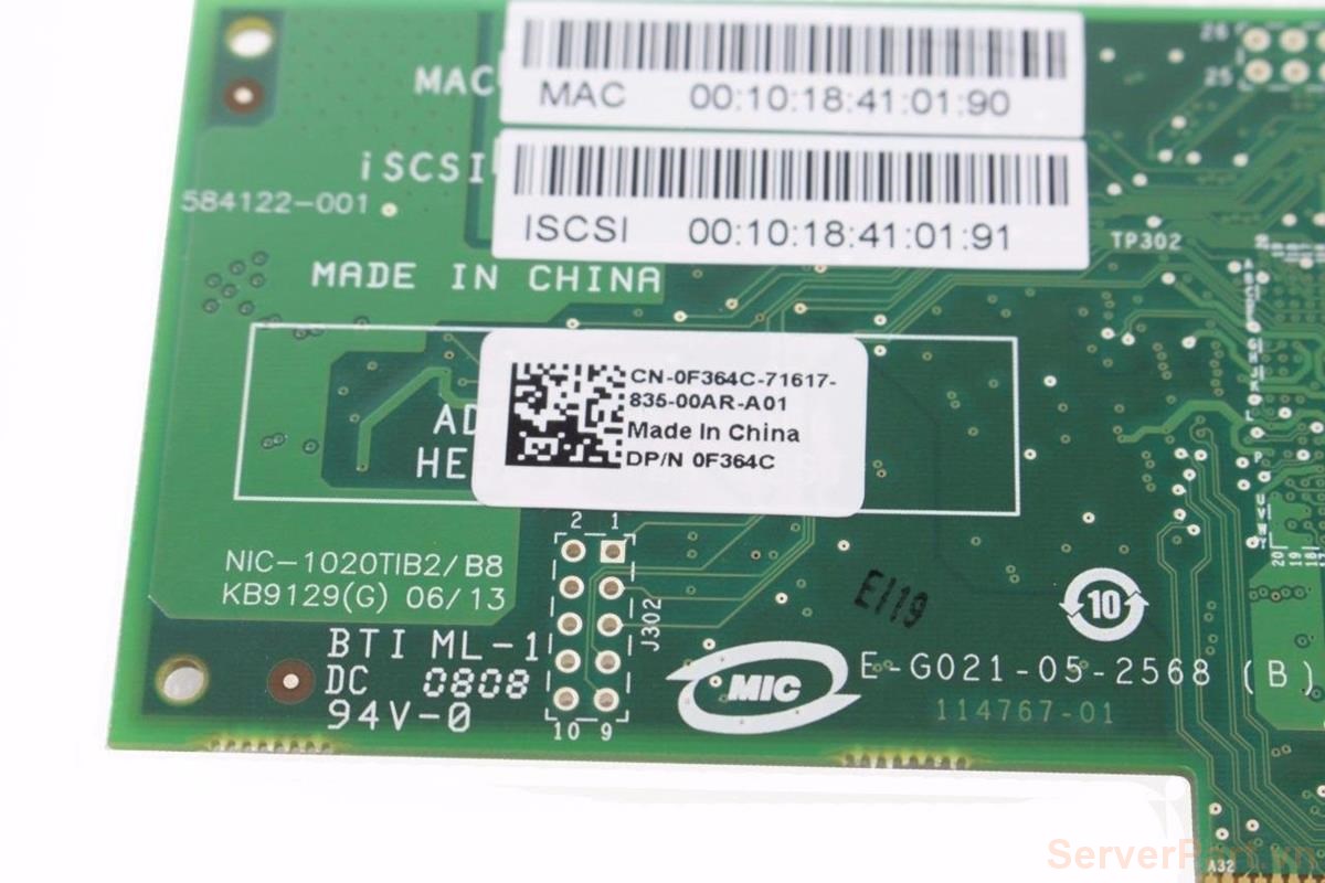 Card nic Dell Broadcom 1Gb 1 port RJ45 0F364C BCM5708