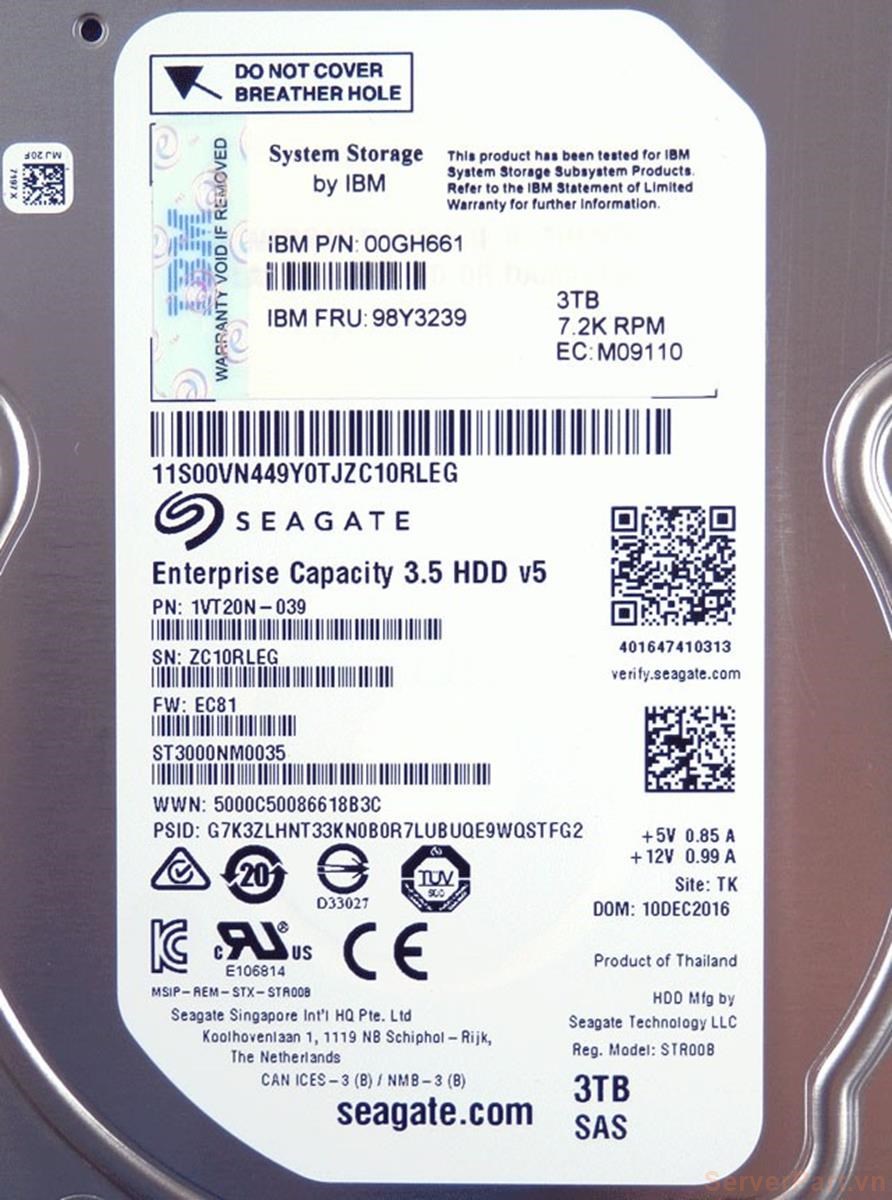 Ổ cứng HDD sas IBM 3tb 7.2k 3.5" fru 98Y3239 pn 98Y3196 opt 98Y3196 ST3000NM0043