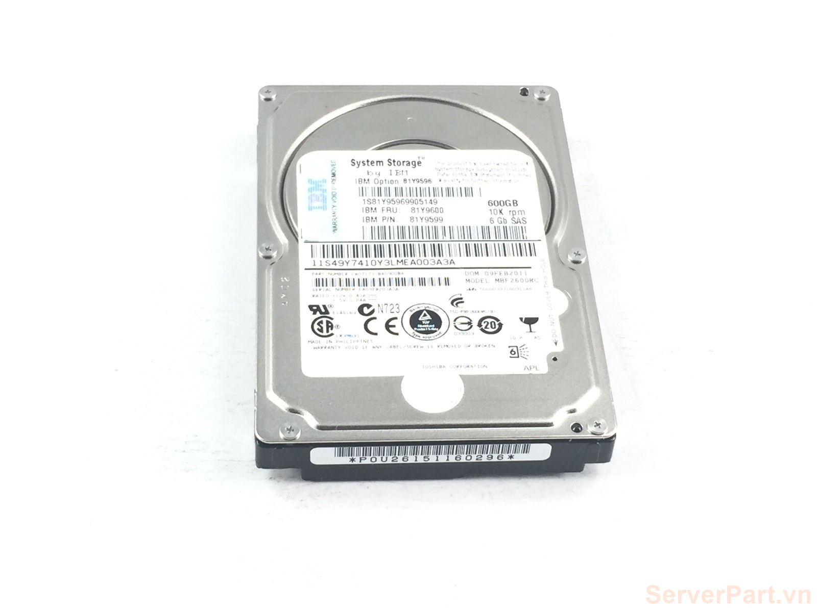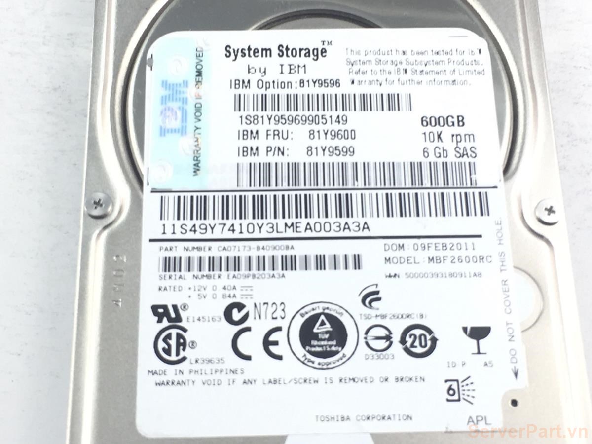Ổ cứng HDD sas IBM 600gb 10k 2.5" fru 81Y9600 pn 81Y9599 opt 81Y9596 exp2524