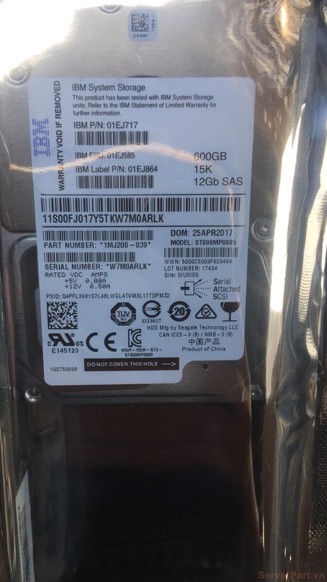 Ổ cứng HDD SAS Lenovo 600Gb 15K 2.5" 12G 01EJ585 01EJ717 opt 01DE349 V3700 V2