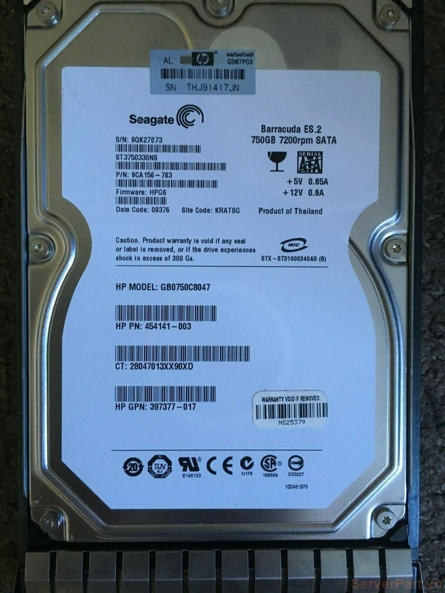 Ổ cứng HDD sata HP 750gb 7.2k 3.5" sp 432401-002 pn 454141-003 gpn 397377-017 432341-B21