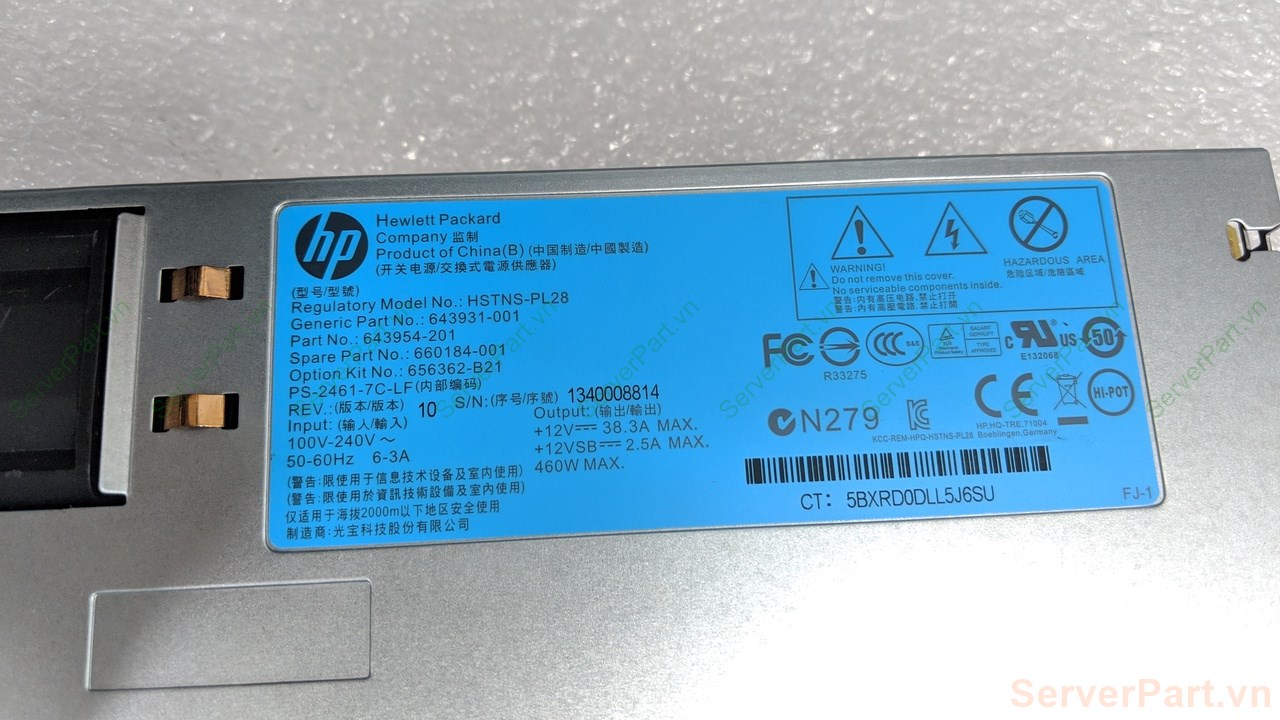 Bộ nguồn PSU Hot HP ML350 DL360 DL380 G8 Gen8 Gen8 460w sp 660184-001 pn 643954-101 gpn 643931-001 656362-B21