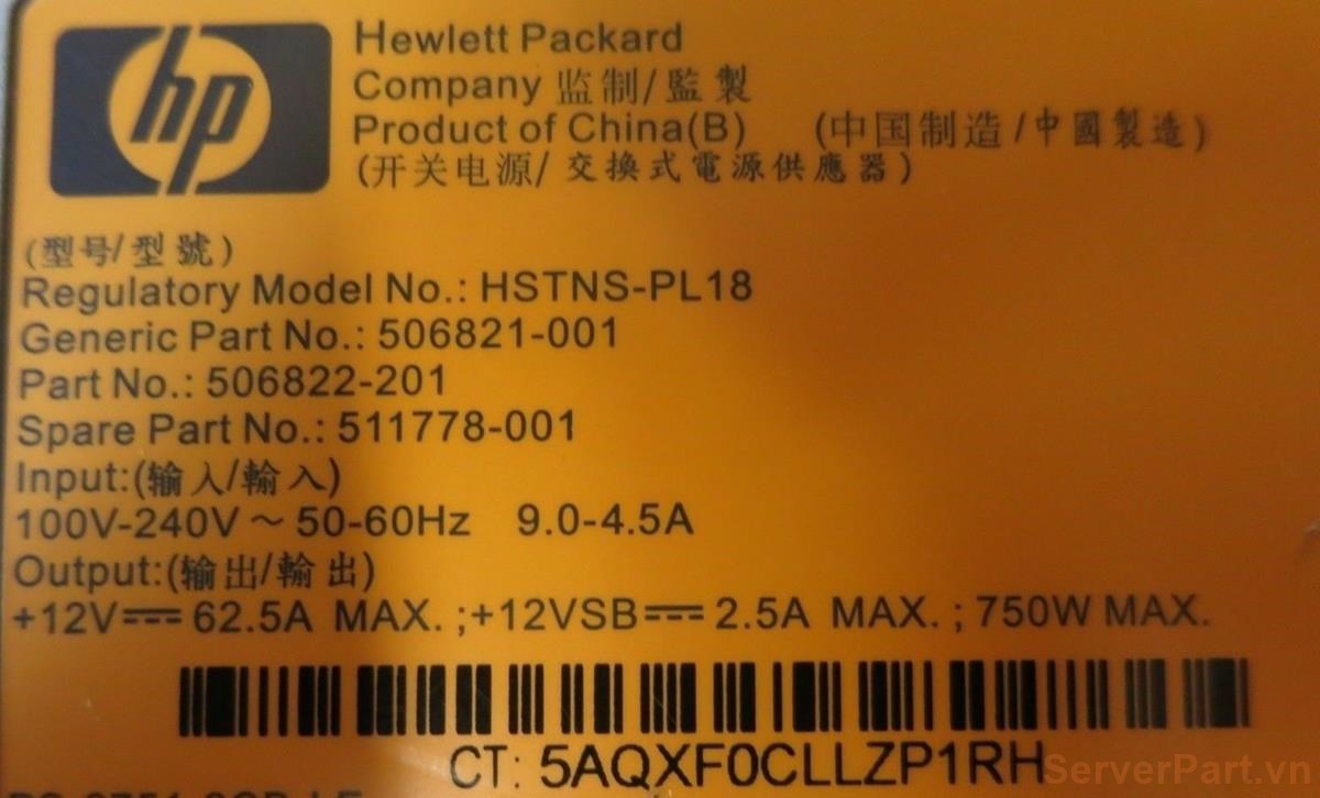 Bộ nguồn PSU Hot HP DL380 ML150 ML350 ML370 G6 G7 750w sp 511778-001 gpn 506821-001 pn 506822-101 512327-B21