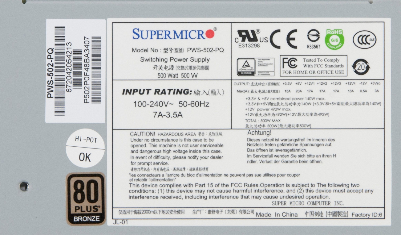 Bộ nguồn PSU Non Supermicro 500w PWS-502-PQ