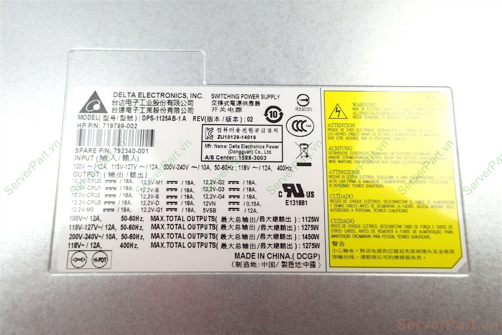 Bộ nguồn PSU Hot HP z840 1125w 1450w sp 792340-001 pn 719799-002 DPS-1125AB-1A