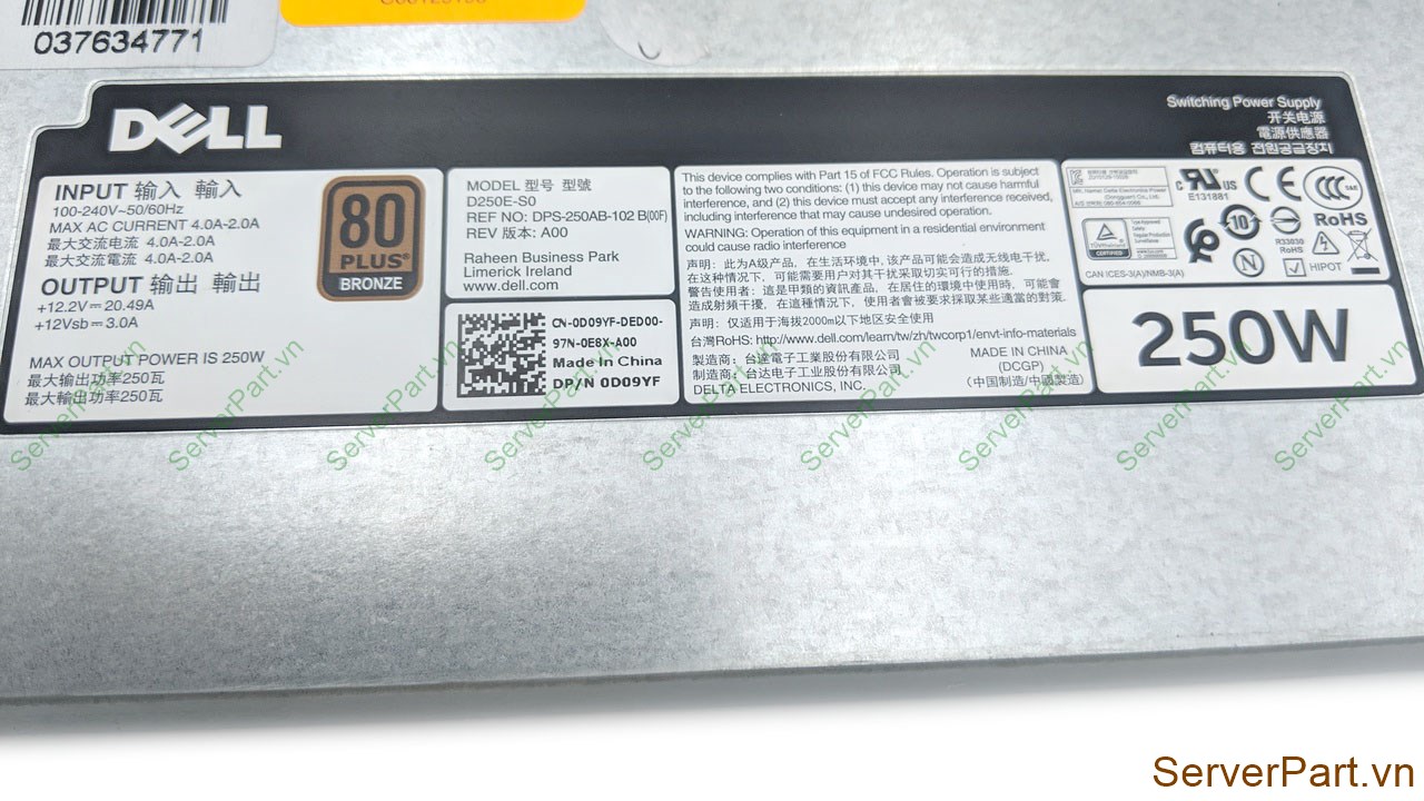 Bộ nguồn PSU Non Dell R240 250w 0D09YF 0P3G94 D250E-S0 DPS-250AB-102