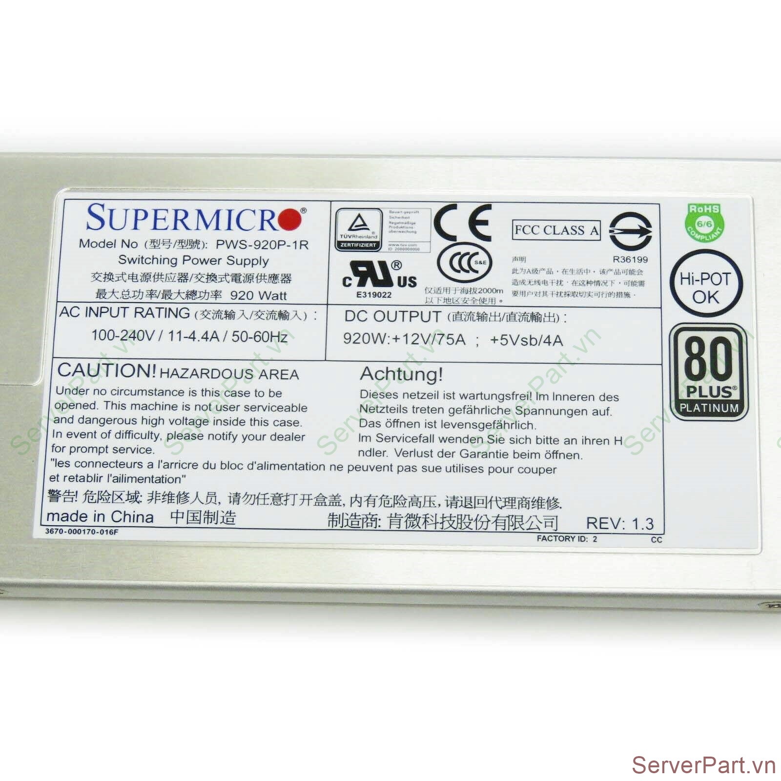 Bộ nguồn PSU Supermicro 1U 920w PWS-920P-1R