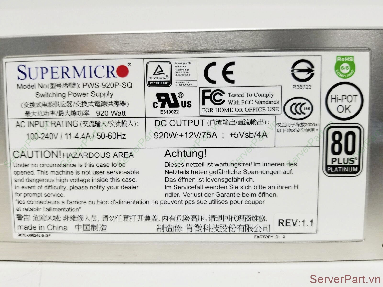 Bộ nguồn PSU Supermicro 1U 920w PWS-920P-SQ