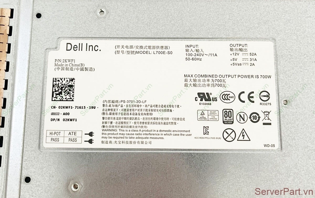 Bộ nguồn PSU Dell Equallogic PS4100 PS6100 PS4210 PS6210 PS4100E PS4100XV PS6100X 700w 02KWF1 2KWF1