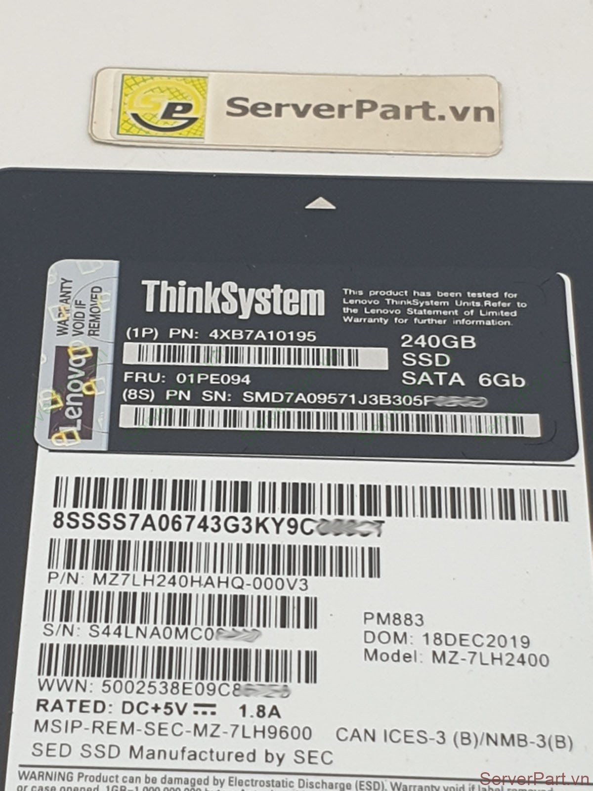 Ổ cứng SSD SATA IBM Lenovo 240GB 2.5" ThinkSystem pn 4XB7A10195 fru 01PE094