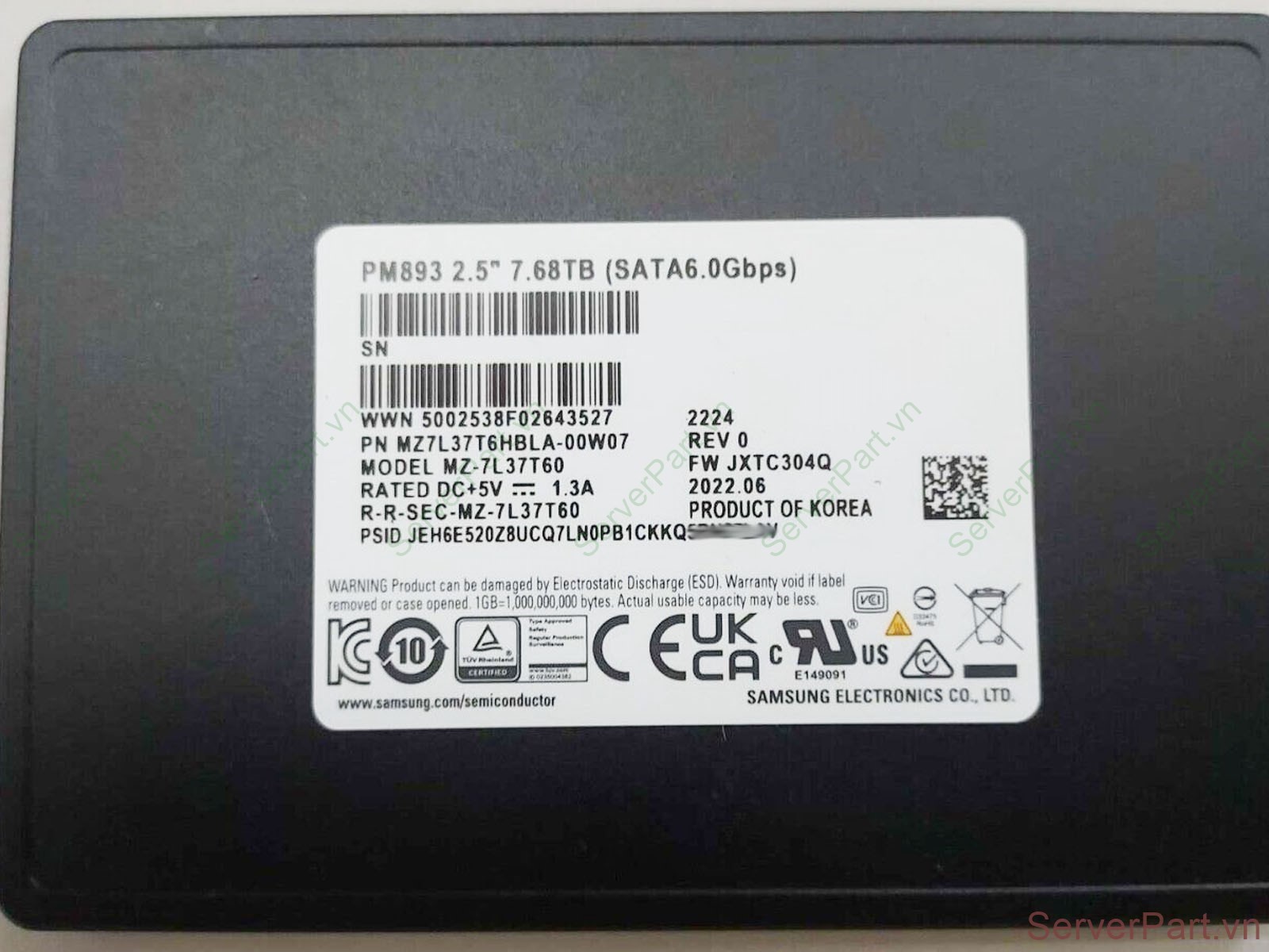 Ổ cứng SSD SATA Samsung 7.68TB 2.5" Enterprise PM893 MZ-7L37T60